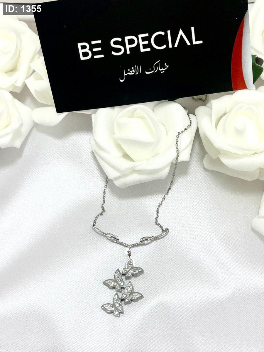 قلادة فضية على شكل فراشات